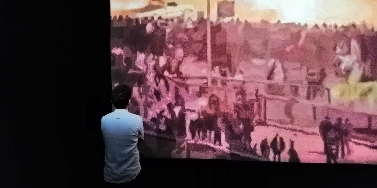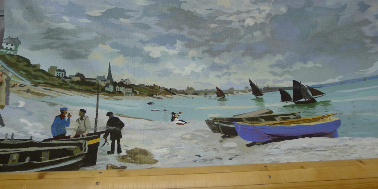Un tout autre style, tissage d’une tapisserie d’après C Monet. La plage de Saint Adresse 130 x 210