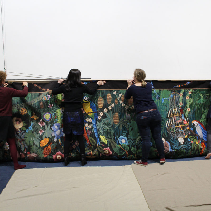 ça y est la tapisserie est terminée, après 2 ans de travail à 3, soit 9400 heures pour 15 m². Un travail de fourmis et passionnant . Oeuvre de